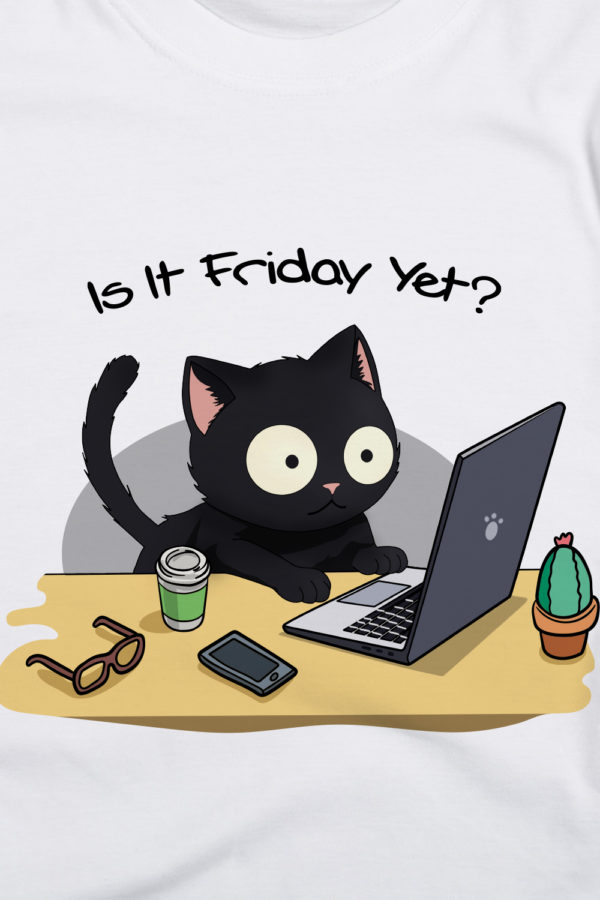 เสื้อยืด ลาย น้องแมวรอคอยวันศุกร์ Is it Friday Yet? (มีสองภาษา ไทยและอังกฤษ)